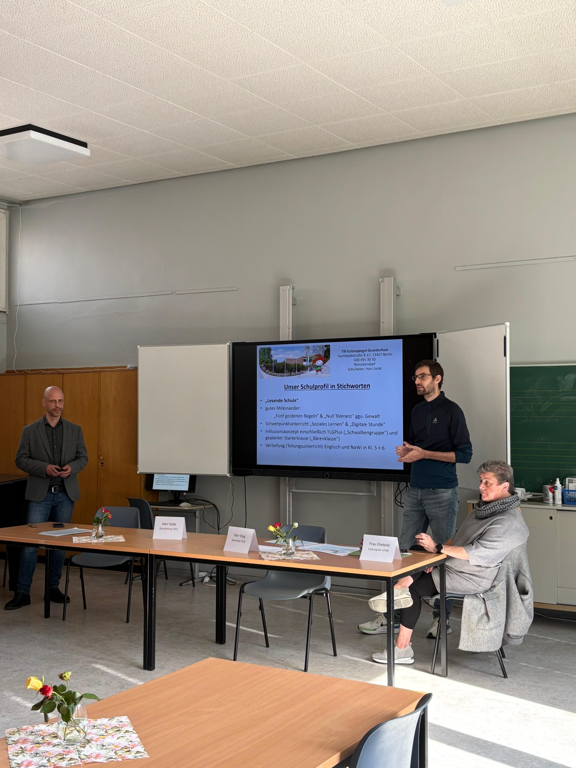 Die Till-Eulenspiegel-Grundschule ist eine bunte und freundliche Schule in meinem Wahlkreis, die ich mit großer Freude besucht habe. Begleitet wurde ich bei diesem Termin von der Senatorin für Bildung, Jugend und Familie, Katharina Günther-Wünsch, dem stellvertretenden Fraktionsvorsitzenden der BVV Reinickendorf, Stefan Valentin (SPD), der stellvertretenden Vorsteherin der BVV Reinickendorf, Sevda Boyraci (SPD), sowie dem umwelt- und kulturpolitischen Sprecher der SPD-Fraktion in der BVV Reinickendorf, Sascha Rudloff.