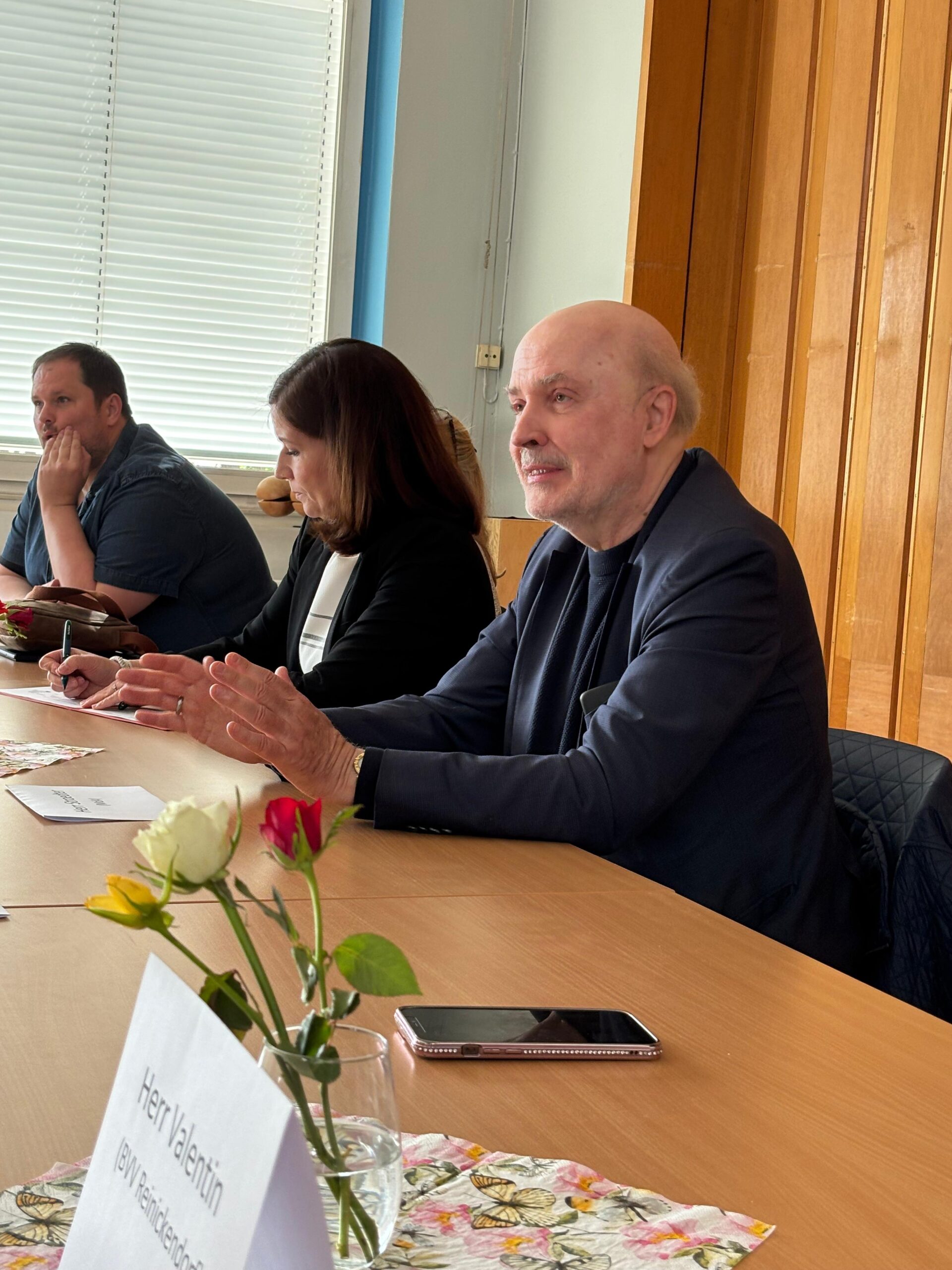 Zu Beginn berichtete die Schulleitung über die aktuelle Situation im Schulalltag. Besonders erfreulich ist, dass ein Großteil der Lehrkräfte ausgebildete Grundschullehrerinnen und -lehrer sind. Ebenso achtet die Schulleitung auf ein ausgewogenes Verhältnis von weiblichen und männlichen Lehrkräften. Derzeit besuchen rund 550 Schülerinnen und Schüler die Schule – sie stammen aus über 30 verschiedenen Nationen. Abgerundet wurde der Termin mit einer Führung durch das Schulgebäude.