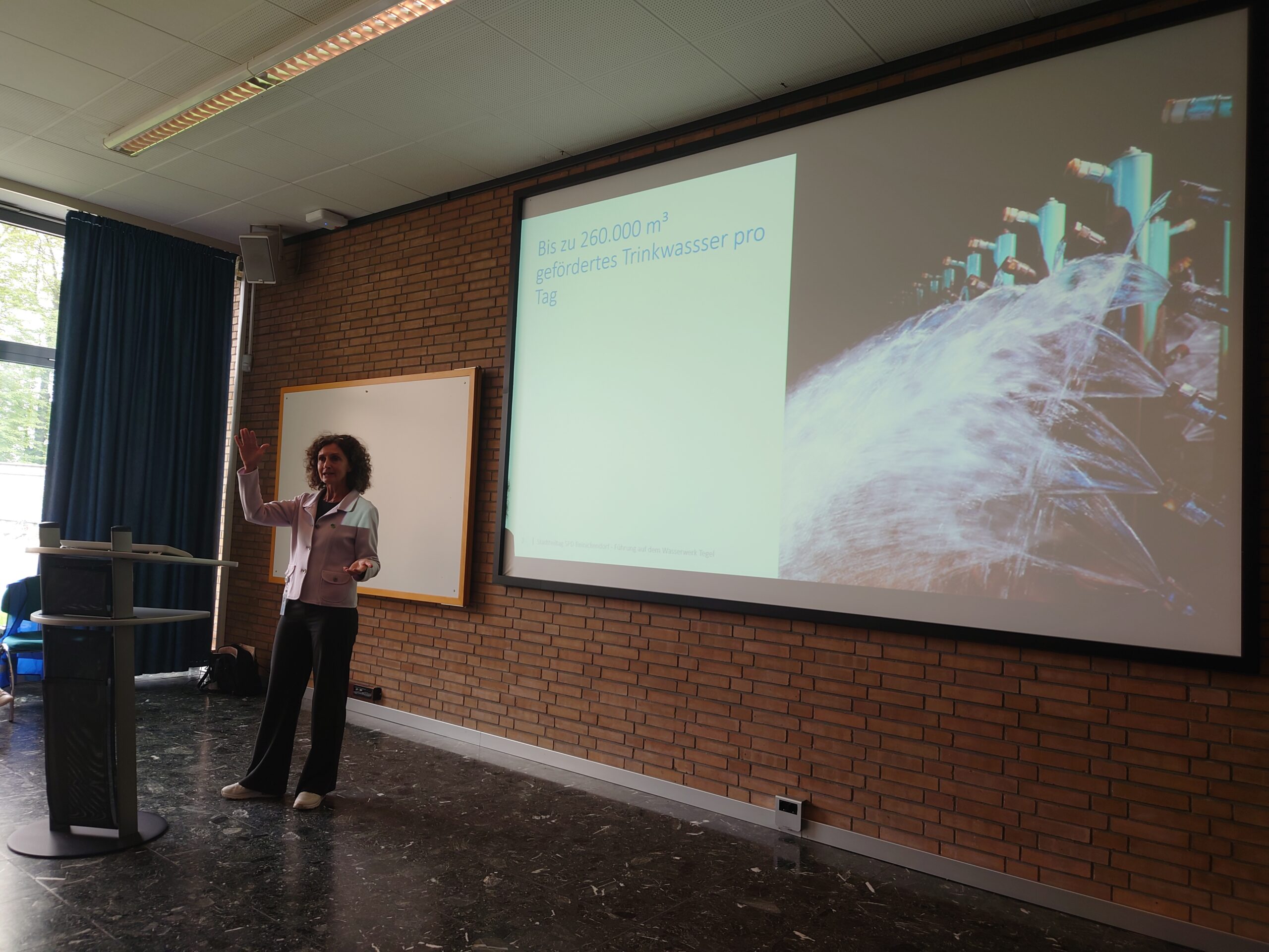 Wie sauber ist das Wasser? Wie wird es aufbereitet? Diese und viele weitere Fragen wurden bei diesem sehr informativen Besuch nicht nur beantwortet, sondern auch anschaulich auf einer Besichtigungstour durch das Wasserwerk verdeutlicht. Das Wasserwerk in Tegel besteht seit fast 150 Jahren, 1877 war die Inbetriebnahme und seitdem hat sich vieles verändert: 109 Liter verbraucht jeder täglich, bei großen Ereignissen wie z.B. der Übertragung von wichtigen Fußballspielen kann in der Leitzentrale minutengenau die Pumpleistung hoch- oder heruntergefahren werden, denn in der Halbzeitpause oder nach Beendigung des Spiels gehen viele Menschen sofort aufs stille Örtchen!