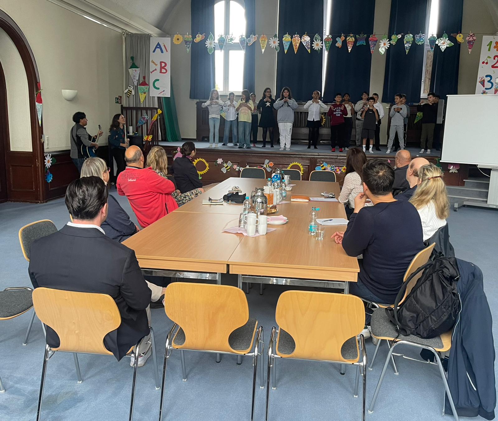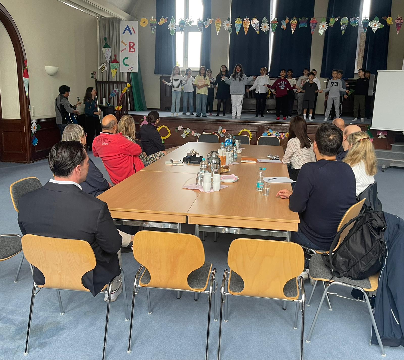 Bereits in der Aula wurden wir herzlich empfangen, von Schulleiter Herrn André Seidel, seiner Stellvertreterin Frau Svenja Krauß, der engagierten Erzieherin und Koordinatorin Frau Müller sowie einer Mitarbeiterin der Schulaufsicht. Einen besonderen Auftakt bildete die Aufführung des Schulliedes der Klasse 4a, die mit viel Freude und Rhythmus das musikalische Profil der Schule unterstrich.